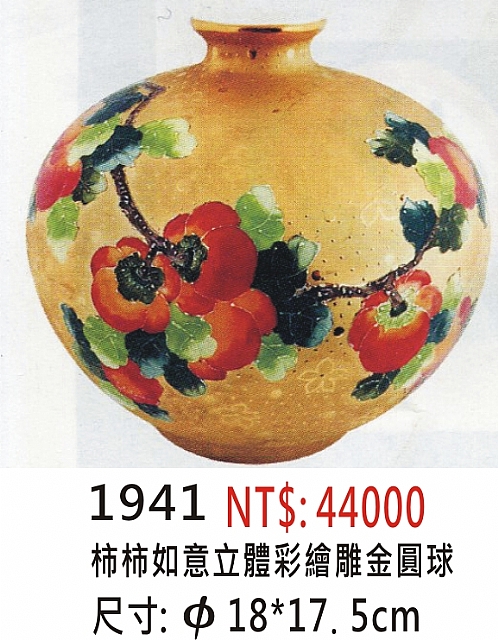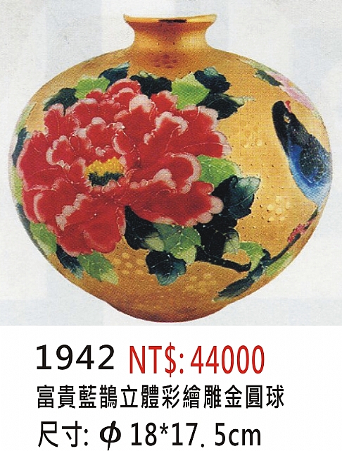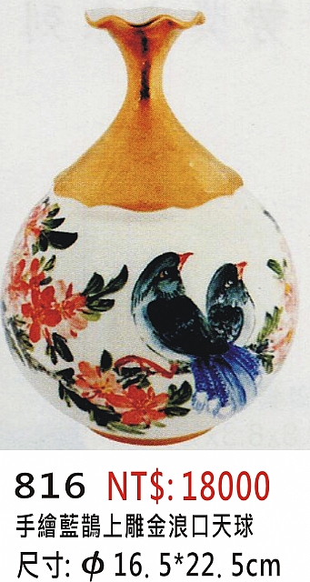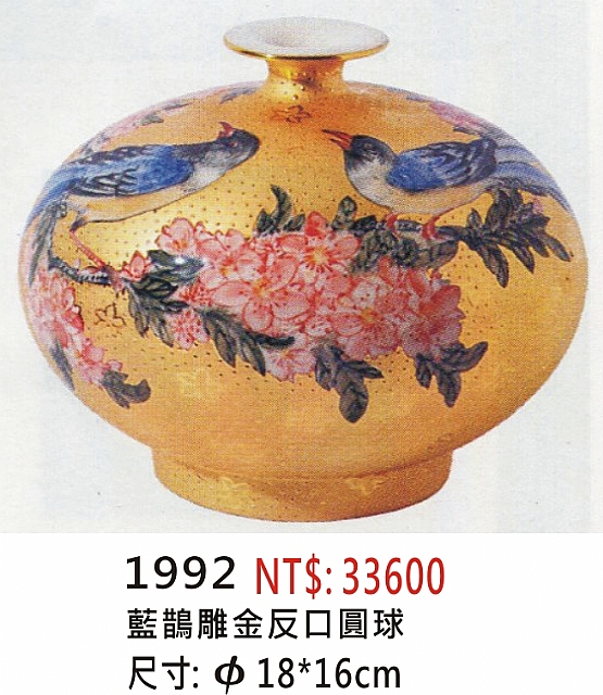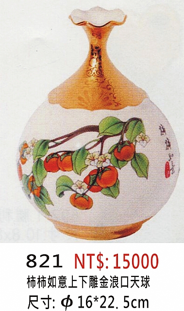 耐米雕金彩瓷 (花瓶) ( 彩繪.手工拉坯)(聚寶盆) 59cj